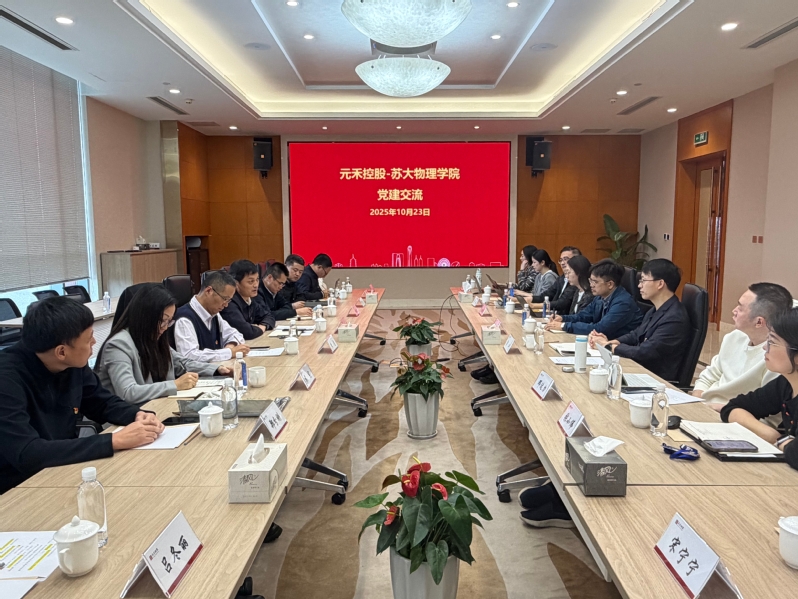为深化基层党组织协同合作,推动党建与业务深度融合,2025年10月23日,学院凝材党支部与元禾控股第一党支部在东沙湖基金小镇开展第二次党建共建交流活动。双方围绕科研项目产业化路径、光子产业链协同发展等议题展开深度互动。学院院长李亮、党委书记赵承良率队出席活动。抵达东沙湖基金小镇后,学院一行在元禾控股党委副书记、纪委书记朱利锋及投资促进部总经理邓达力的陪同下,先后参观了苏州科技商学院与东沙湖基金小镇展厅,详细了解元禾控股的发展历程、基金管理模式、重点项目投资方向、全国业务布局,以及与苏州大学过往合作的成果亮点。在座谈交流环节,元禾控股副总裁郭平首先致辞。他指出,元禾控股与苏州大学的合作已覆盖多个