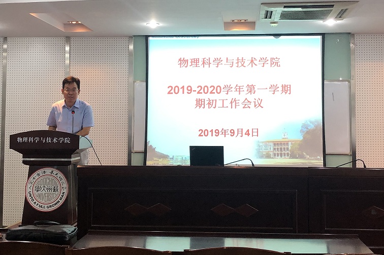 9月4日下午,物理学院在物理科技楼409会议室召开了2019-2020学年第一学期第一次全体教职工大会,会议由孙德芬书记主持。孙书记首先向全院老师介绍新入职的5位新老师,并逐一介绍了他们的研究经历和背景。本次学院大会主要有两项议程。