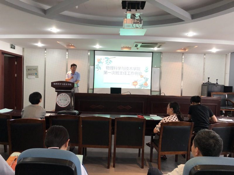 学期伊始,为进一步加强本科学生工作建设和班级管理,充分发挥班主任的重要作用,物理科学与技术学院于9月4日下午召开学院全体年级班主任工作会议,学院全体党政领导班子,各年级班主任、辅导员老师参加了会议。会议由学院党委副书记谢燕兰主持。