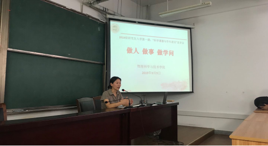 2019年9月9日下午,我院在物理科技楼418召开了2019级研究生“科学道德与学风建设”专题宣讲会暨新生入学第一课。全体2019级硕士和博士研究生参加了宣讲会。研究生辅导员吴亮老师主持了会议。