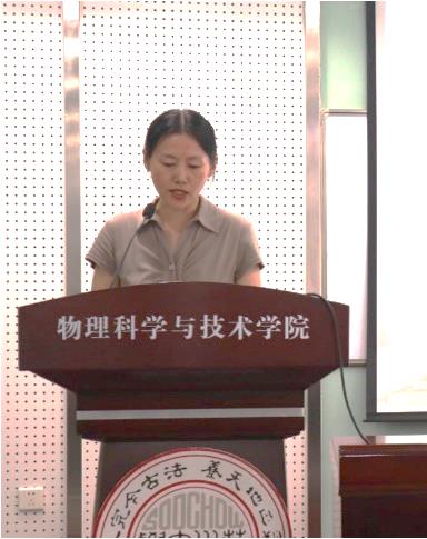 吴雪梅院长介绍了4位新入职的教师。上半年学校高度重视人才队伍建设,引进了包括1位特聘教授、2位专职科研人员和1位讲师。吴院长在大会总结中表示,今年是她在苏大工作的第30年,今年以院长身份重回学院大家庭,一定会与学院全体师生一起努力,统一思想,凝心聚力,在新的发展时期,抓住机遇,为建设国际知名,国内一流的物理学院做出自己的贡献。