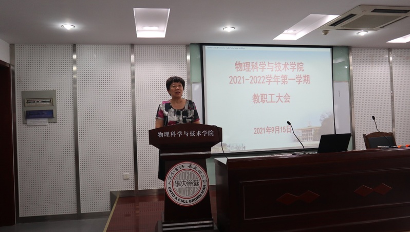 9月15日,学院在物理科技楼409会议室召开了2021-2022学年第一学期第一次全体教职工大会。会议由孙德芬书记主持。