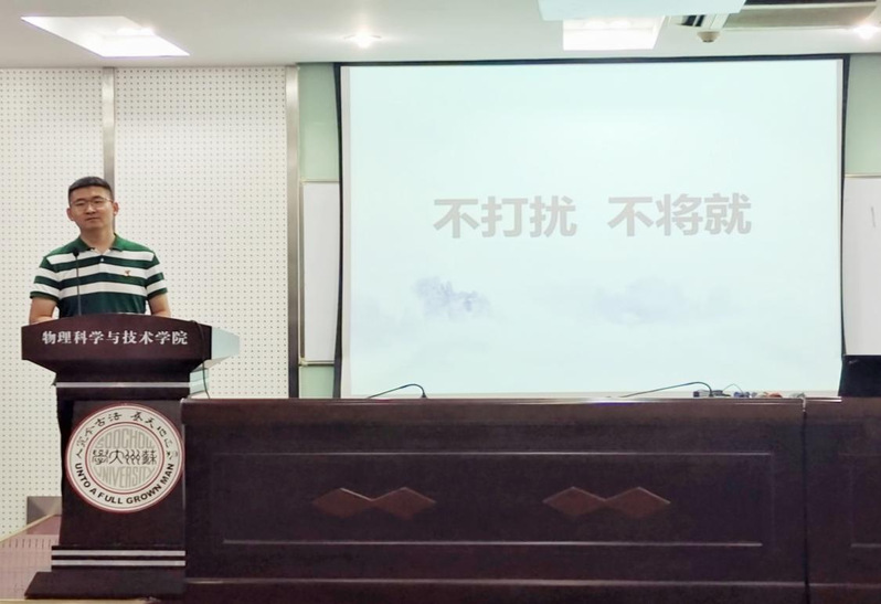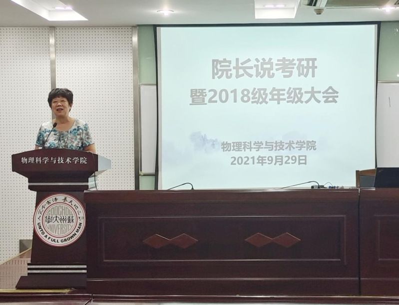 为帮助学院2018级毕业班同学做好职业生涯规划,使每位同学对自己的发展有更加明确的方向和目标,从而在接下来的一年里顺利迈入到人生的下一阶段。9月29日下午4点,物理科学与技术学院在物理科技楼409开展了职业生涯规划教育之院长说考研暨毕业班年级会。学院院长吴雪梅、教学副院长周丽萍、党委副书记谢燕兰、教务办公室主任陈敏、18级物理班班主任翁雨燕、师范班班主任董裕力,以及学院全体2018级本科生出席了本次会议。会议由18级辅导员郭永坤主持。