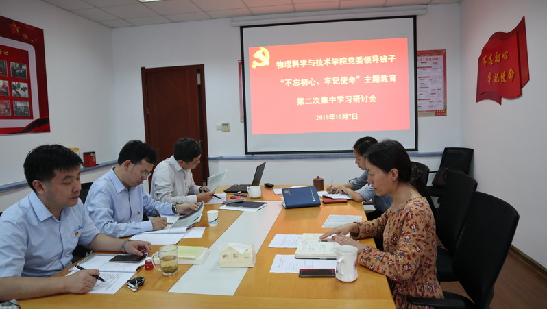 10月7日下午,物理科学与技术学院党委领导班子“不忘初心、牢记使命”主题教育第二次集中学习研讨会在博习楼213会议室召开,学院党政领导班子全体成员出席了会议,此次学习的主题是“学习赵亚夫事迹,坚守初心使命”。