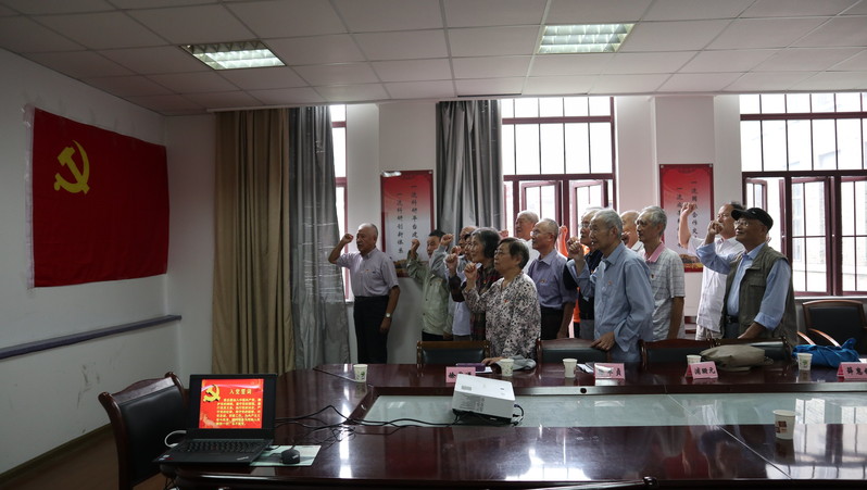 最后,退休支部全体老师在支部书记戴苏明的带领下重温了入党誓词。