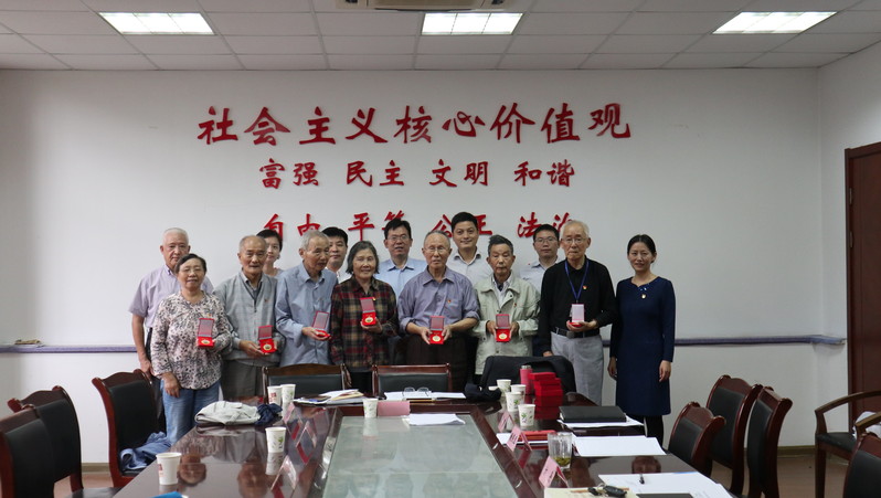 高雷院长宣读了学校《关于对党龄满50年老党员颁发荣誉纪念章的通知》,向我院获得荣誉纪念章的13位退休老师表示了祝贺。学院党政领导班子成员向获得纪念奖章的老师颁发了奖章。