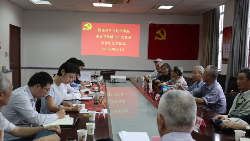 10月11日上午,物理学院党委举行了为党龄满50年的老党员颁发荣誉纪念章仪式暨学院退休党支部主题党日活动。物理学院党政领导班子全体成员,退休党支部党员出席了此次活动。会议由退休党支部书记戴苏明老师主持。