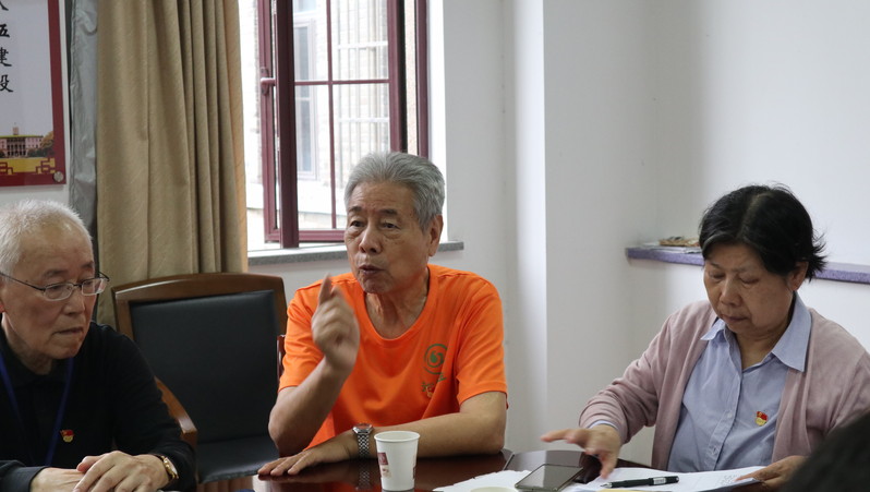会议第二个议程,退休党支部书记戴苏明老师传达了关于离退休干部党组织“六有一提升”的文件精神。