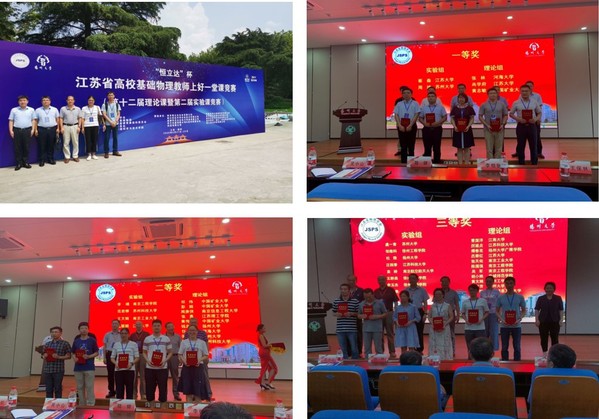2020年8月21日-23日,江苏省高校第十二届基础物理教师上好一堂课竞赛于在扬州大学举行。本次竞赛共有来自全省24所高校的61名优秀教师参赛,经过竞赛评审委员现场打分、会议评审环节,共评出一等奖 5 名,二等奖 13 名,三等奖 20 名。我院周坤老师、虞一青老师分别荣获实验组一等奖和三等奖,张秀美老师荣获理论组二等奖。