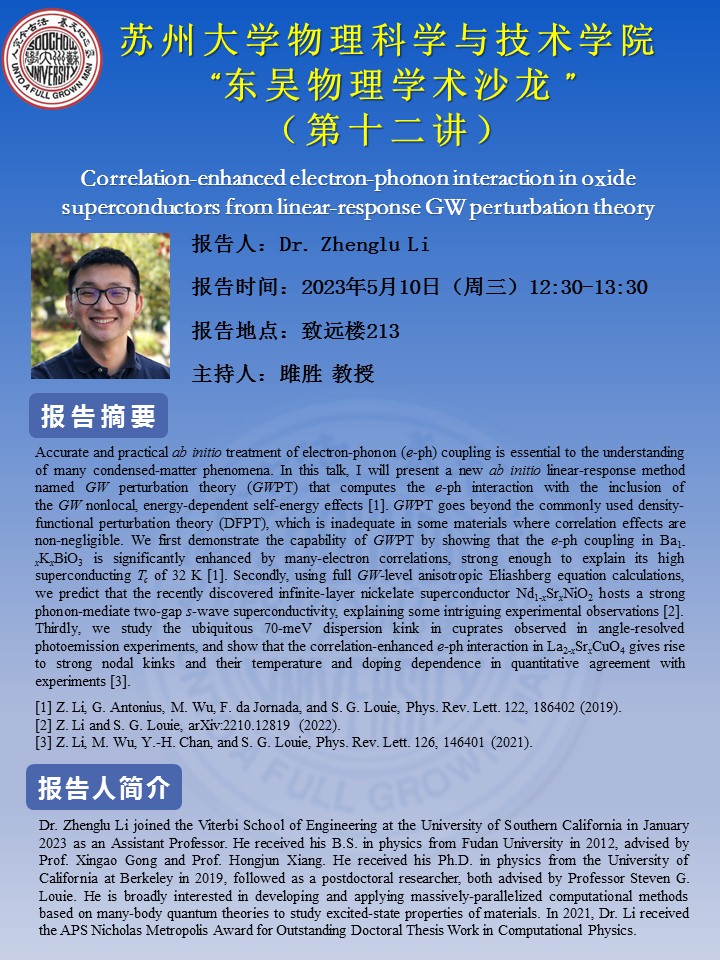 “东吴物理学术沙龙”(第十二讲)-李争路博士