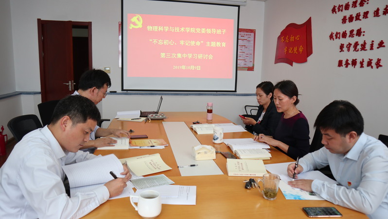 10月9日上午,物理科学与技术学院党委领导班子“不忘初心、牢记使命”主题教育第三次集中学习研讨会在博习楼213会议室召开,此次学习的主题是“坚定理想信念、牢记育人初心”。