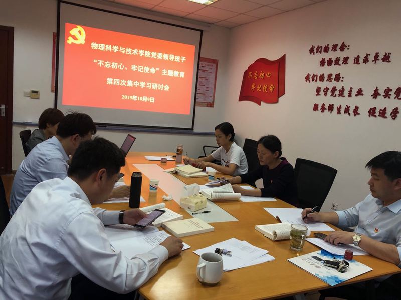 10月9日下午,物理科学与技术学院党委领导班子“不忘初心、牢记使命”主题教育进行了第四次集中学习研讨。此次集中学习分为两个部分,一是参观初心馆开展现场学习,二是集中学习研讨《中国共产党党内重要法规汇编》。
