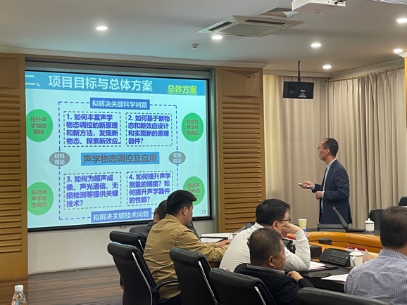 4月22日,由苏州大学物理科学与技术学院蒋建华教授牵头承担的国家重点研发计划“物态调控”重点专项项目“超构声学材料的新奇物态调控及前沿应用研究” 启动暨实施方案论证会在苏州大学天赐庄校区顺利召开。此次会议由苏州大学物理科学与技术学院主办。科技部高技术研究发展中心墨宏山处长出席会议。项目实施方案论证专家组包括清华大学段文晖院士(组长)、南京大学陈延峰教授、南京大学陆延青教授、华东理工大学方海平教授、西湖大学吴从军教授、厦门大学陈张海教授、南京大学卢明辉教授、复旦大学石磊教授、中科院上海微系统所欧欣研究员和中山大学刘进教授。出席会议的还有苏州大学李孝峰副校长、科学技术研究院基础科研处刘开强处长、物理科学与技术学院吴雪梅院长和赵承良副院长以及项目组成员40余人。会议分别由刘开强处长、赵承良副院长主持。