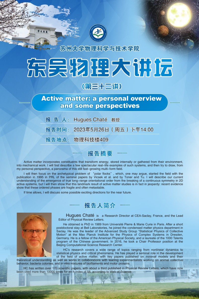 “东吴物理大讲坛“(第三十二讲)——Active matter: a personal overview and some perspectives