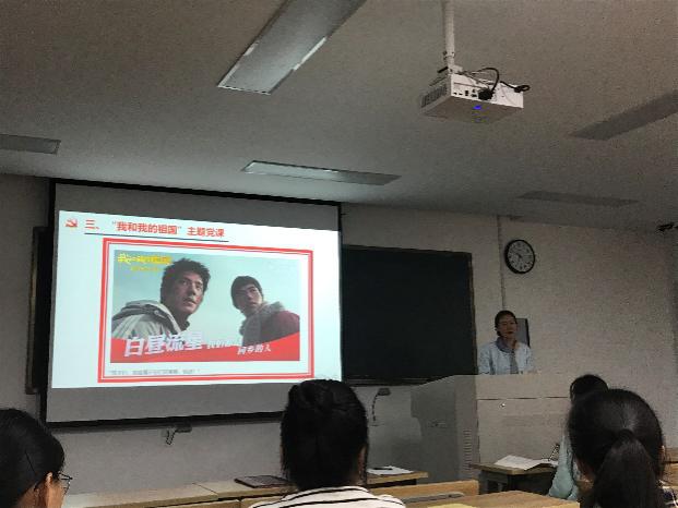 研究生三支部书记张孟影以电影《我和我的祖国》中前夜、相遇、夺冠、回归、北京你好、白昼流星及护航等七个主题的短视频,从七个重大的历史瞬间让大家感受重温了祖国70年来的日新月异,导演们却把这些大事件背后的小人物呈现在我们观众面前,它让大家感受到每位小人物所带来的正能量,小人物的星星之光汇成了祖国70年来的辉煌和璀璨。我们每个人的力量汇聚起来就可以为实现中华民族的伟大复兴,实现中国梦奉献出自己的一份力量。