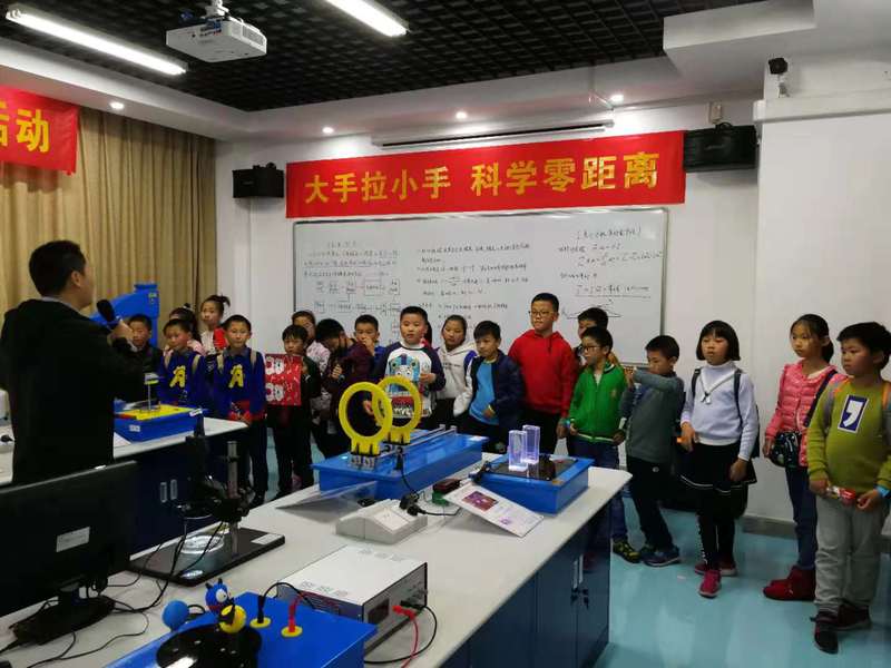 为进一步弘扬科学精神、传播科学思想、倡导科学方法、普及科学知识,2018年11月25日下午,苏州大学物理科学与技术学院的苏州市科普基地迎来了两批小客人。来自苏州市方洲小学的46位学生和来自扬子晚报的12位小记者参加了“大手拉小手,科学零距离”科学开放日活动。学院党委书记孙德芬、副院长赵承良出席并参加了此次活动,学院孙宝印老师、钱懿华老师分别为小朋友们送去了丰盛的科普大餐。