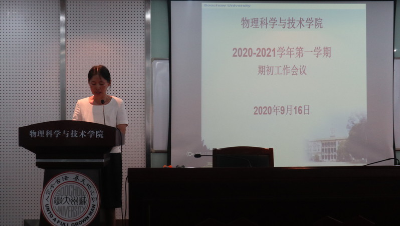 9月16日下午,物理科学与技术学院在物理科技楼409会议室召开了2020-2021学年第一学期第一次全体教职工大会,学习校党委十二届十次全体会议和全校干部大会精神,布置学院本学期工作。会议由学院党委书记孙德芬主持。