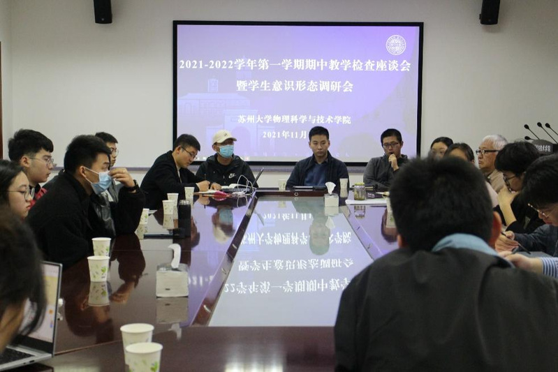 为推动学院本科生教学教育工作的有序开展,及时发现并改进课堂教学中存在的问题,进一步了解学生的思想动态,2021年11月17日下午,我院召开了2021-2022学年第一学期期中教学检查座谈会暨学生意识形态调研会。参加本次会议的有物理科学与技术学院副院长周丽萍、教学督导戴苏明、教务办公室主任陈敏、辅导员郭永坤、单杨杰,以及各年级学生代表、偏远地区少数民族学生代表,会议由学院辅导员郭永坤主持。