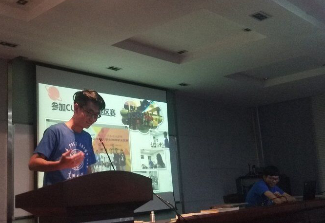 学生们独立制作了比赛集锦和暖场视频,让在座的同学产生了身临其境的感觉。通过赛事规则的解读、参赛作品的介绍以及实际比赛视频的分享,苏州大学天赐队队长冀磊同学与队伍主力梁美君同学作为代表介绍了此次比赛的相关情况及感悟。