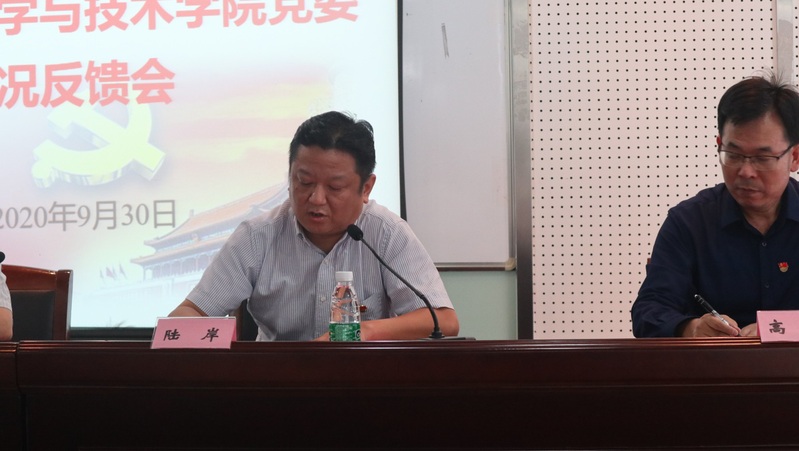 陆岸主要从第四巡察组巡察的总体情况、发现的主要问题和意见建议三个方面反馈了巡察意见。他从学院党委在贯彻落实党的路线方针政策和党中央、省委重大决策部署、贯彻落实全面从严治党战略部署、贯彻落实新时代党的组织路线、内部治理体系和治理能力现代化、巡视巡察审计主题教育等整改落实等5个方面指出了党建工作存在的17个问题。针对上述问题,陆岸提出四条整改建议:一要强化党委的政治核心作用,推动学院高质量发展;二要压实“一岗双责”,进一步推动全面从严治党向纵深发展;三要树立“抓好党建是最大政绩”的理念,推动党建工作与学院治理的深度融合;四要做好“后半篇文章”,进一步提高整改实效。