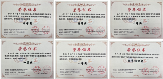 在物理科学与技术学院的高度重视和精心组织、师范学院的大力支持和协助下,此次活动的“选拔-培养-竞赛”全程井然有序,师生们始终保持着高度的参赛热情与积极性。学院指导老师们从教学设计、课件制作、说课讲课、板书展示、自制教具、论文撰写等角度对同学们进行了全方面的系统指导,学院同时邀请了苏州市教育一线优秀初高中物理教师进行现场指导,帮助同学们基于专业视角改进参赛作品。经历为期一个月的高强度备赛,选手们最终凭借创新的教学与实验设计、熟练自信的汇报展示、高水平的学术论文,为我院斩获了一系列的荣誉。