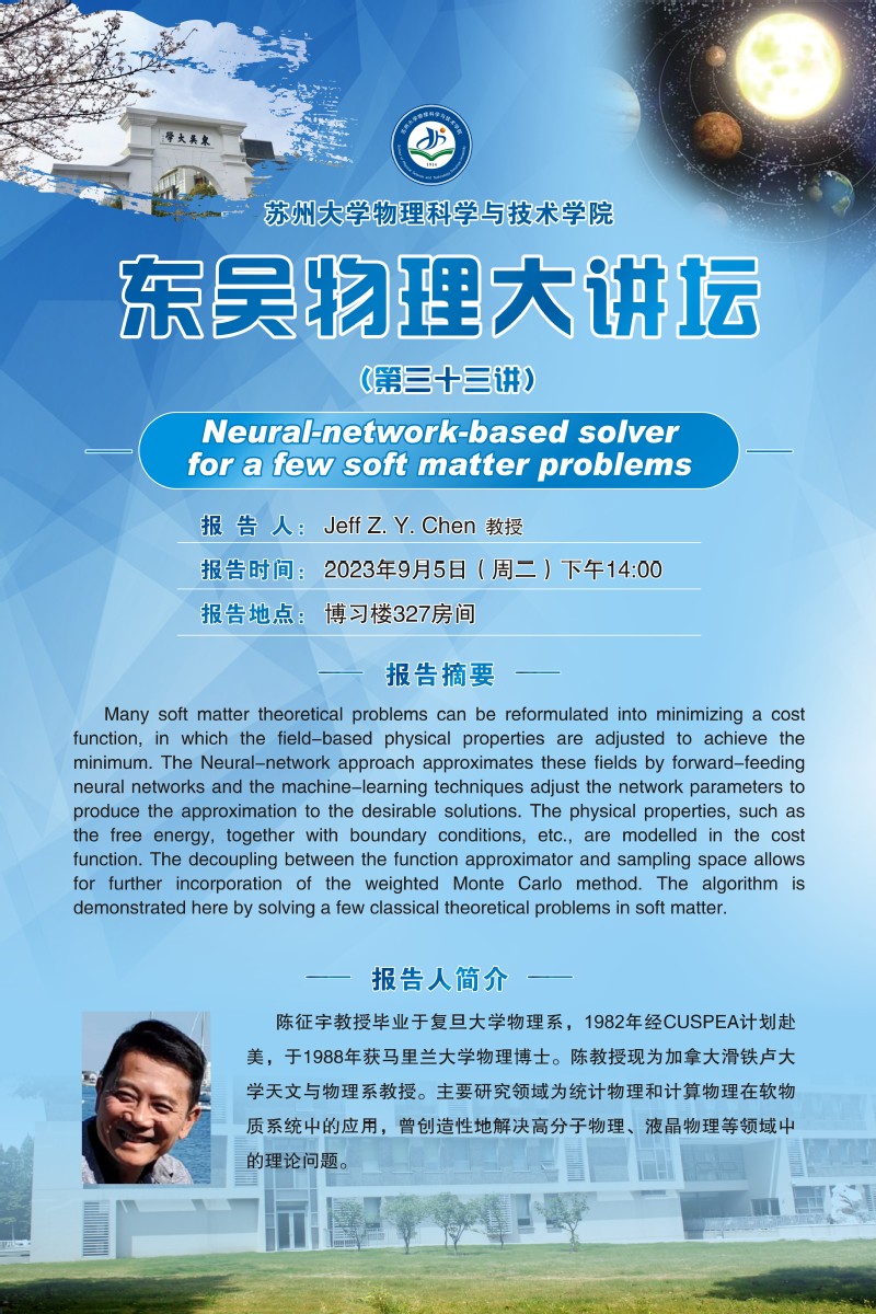 "东吴物理大讲坛"(第三十三讲)——Neural-network-based solver for a few soft matter problems