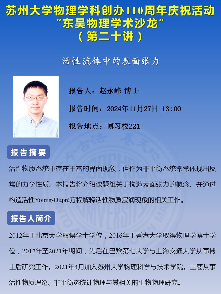 “东吴物理学术沙龙”(第二十讲)——赵永峰博士