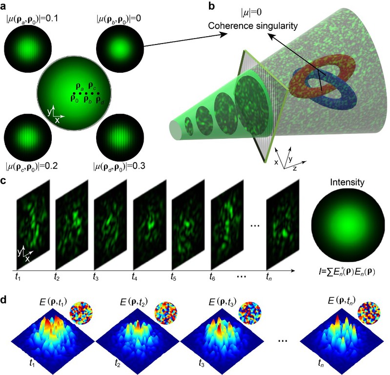 纽结独特而稳定的拓扑结构在物理学、生命科学、光与物质相互作用等领域扮演着重要角色,以纽结为代表的拓扑结构光场调控为新型光场的构建提供了新思路与新自由度。光学奇点是构建纽结拓扑结构的重要途径,如常见的相位、偏振奇点。相干奇点作为光学奇点的新类型,对应非相干光场统计关联零点,其分布可精密调控,与光场的空间相干性紧密相关,已在湍流中的光信息加密及鲁棒探测中展现出重要应用价值。然而,由相干奇点构建的高维结构光场尤其是拓扑结构光场尚未得到充分探索。