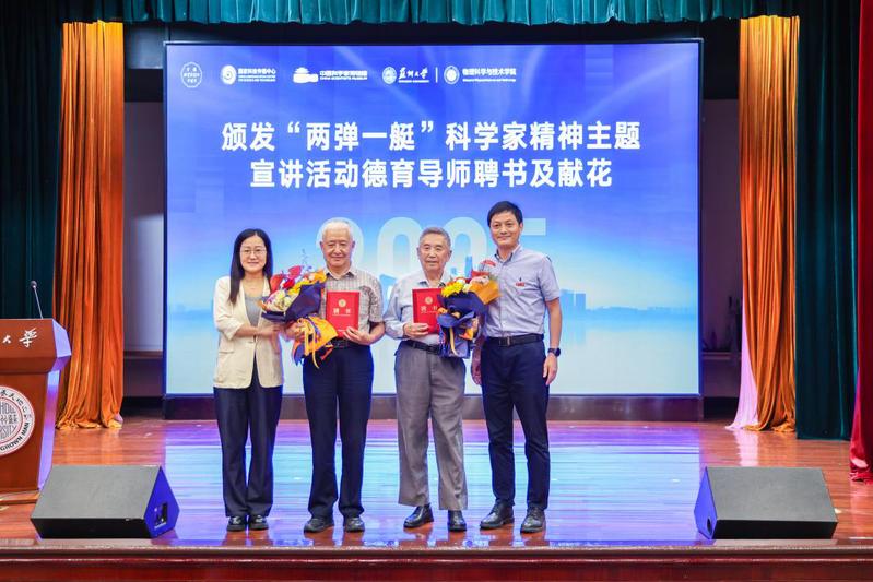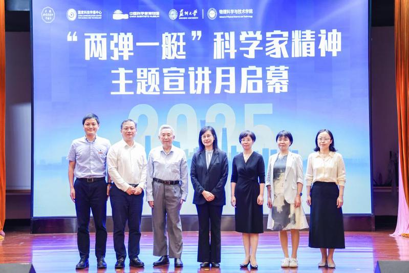 为大力弘扬科学家精神,引导广大师生坚定科技报国理想信念,2025年9月25日晚,物理科学与技术学院于天赐庄校区敬贤堂成功举办中国科学家精神宣讲团苏州大学专场宣讲会暨“两弹一艇”科学家精神主题宣讲月启动仪式。
