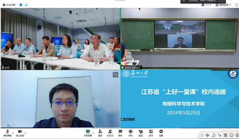 为深入学习贯彻习近平总书记关于思政课建设的重要指示精神,落实立德树人根本任务,推进苏州大学“铸魂逐梦”工程建设,提高青年教师教学技能和创新精神,2024年5月29日,物理科学与技术学院在物理科技楼412隆重举行江苏省高校基础物理“上好一堂课”校内选拔赛暨物理实验课程思政建设专题研讨活动。我院周丽萍副院长、方建兴教授、实验中心及学院参与公共教学的相关教师参加活动,东南大学物理实验中心主任陈乾教授作为特邀嘉宾参与点评和研讨,活动由实验中心副主任杨俊义主持。