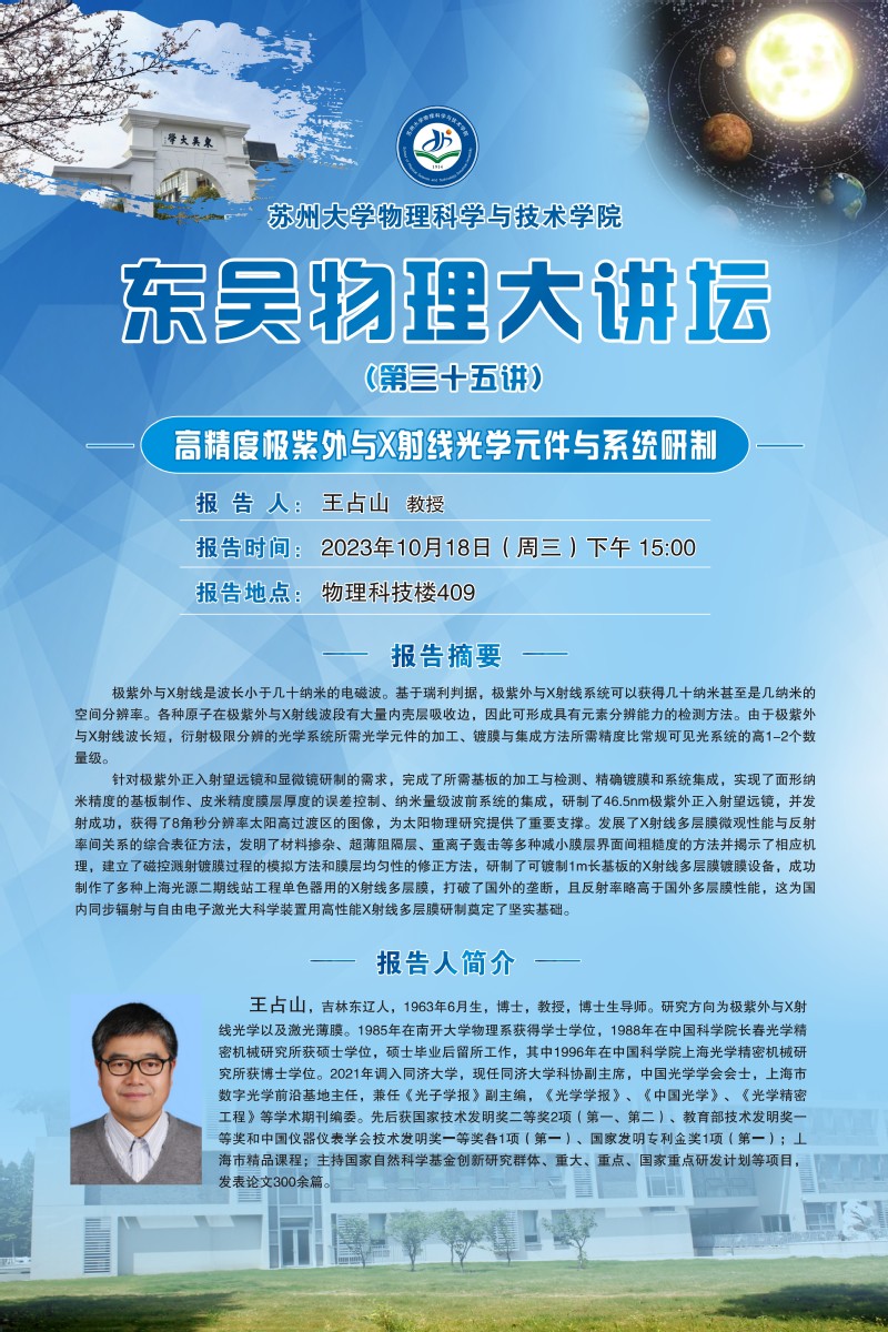 “东吴物理大讲坛“(第三十五讲)——高精度极紫外与X射线光学元件与系统研制