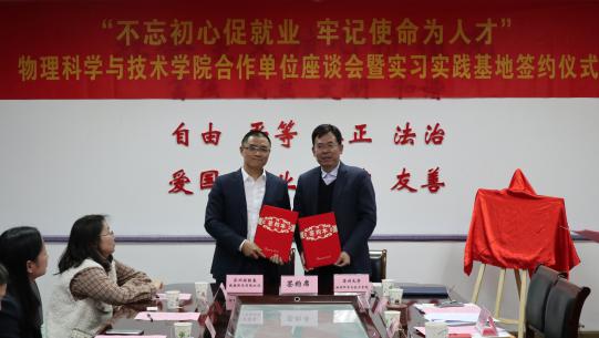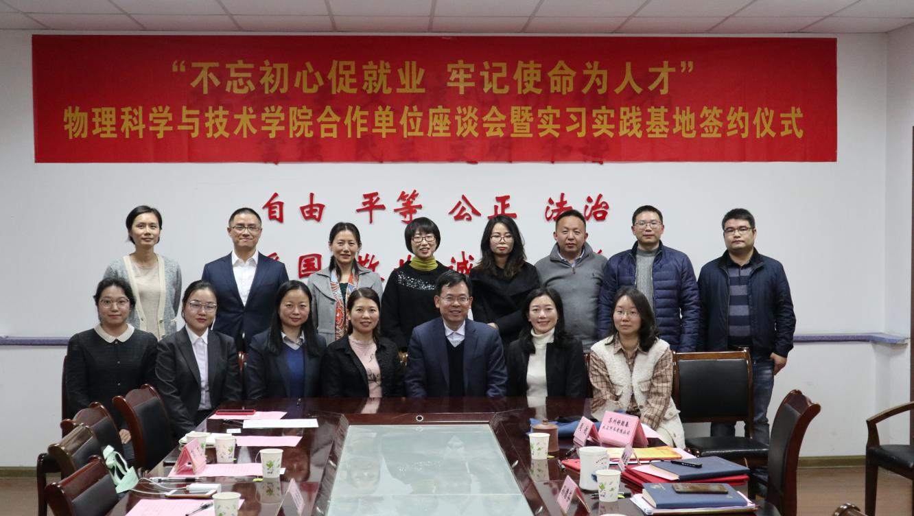 为深入学习贯彻党的十九大精神,进一步落实学校关于就业工作的新要求,结合“不忘初心、牢记使命”主题教育,11月20日下午,物理科学与技术学院“不忘初心促就业,牢记使命为人才”合作单位座谈会暨实习实践基地签约仪式在苏州大学天赐庄校区校本部博习楼221会议室举行。中国航空工业苏州长风航空电子有限公司人力资源部主任王天娇、苏州利华科技股份有限公司人力资源部总经理李兰平、宁波银行股份有限公司苏州分行人力资源部总经理陆玲玲、苏州好懿春数据服务有限公司运营总监郝晔、苏州阿特斯阳光能源科技有限公司人力资源部经理唐素芳、苏州阿特斯阳光电力科技有限公司培训经理张雪景、苏州诺威特测控科技有限公司总经理秘书宋艳茹、苏州佳智彩光电科技有限公司人力资源部经理郭艺,苏州大学招生就业处副处长张芸、招生就业处招生科科长常赛,物理科学与技术学院党委书记孙德芬、院长高雷、教授苏晓东、2016级物理学专业班主任周坤、科研秘书周航、团委副书记郭永坤、辅导员单杨杰,活动由学院党委副书记、副院长谢燕兰主持。