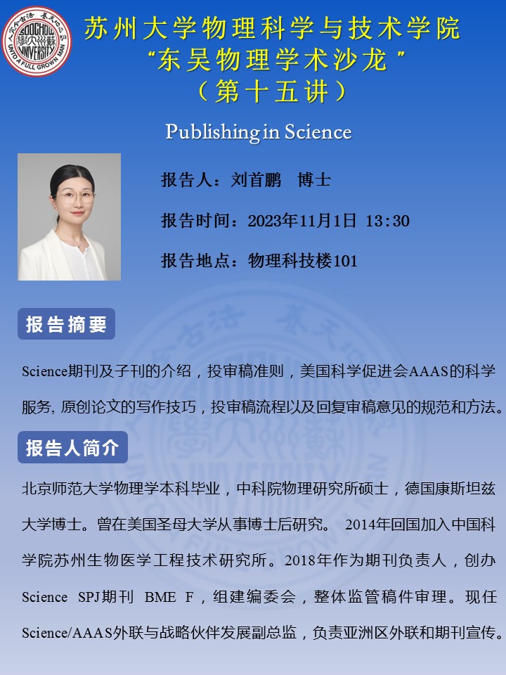 “东吴物理学术沙龙”(第十五讲)——刘首鹏博士