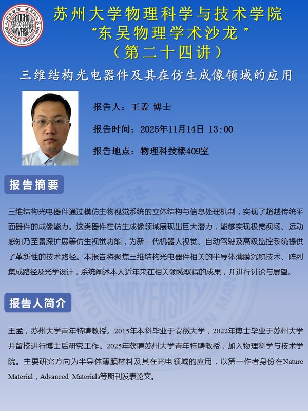 “东吴物理学术沙龙”(第二十四讲)——王孟博士