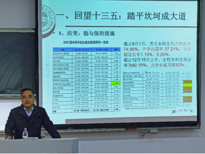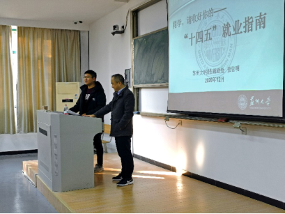 为做好学院大一新生职业生涯规划教育,明确大学期间奋斗目标,物理科学与技术学院于12月16日下午在本部鸿远楼207开展了题为“同学,请收好你的‘十四五’就业指南”的讲座,讲座邀请了苏州大学招生就业处处长查佐明老师主讲,出席此次讲座的有学院全体2020级本科生、学院党委副书记谢燕兰、辅导员单杨杰。讲座由20级辅导员郭永坤主持。