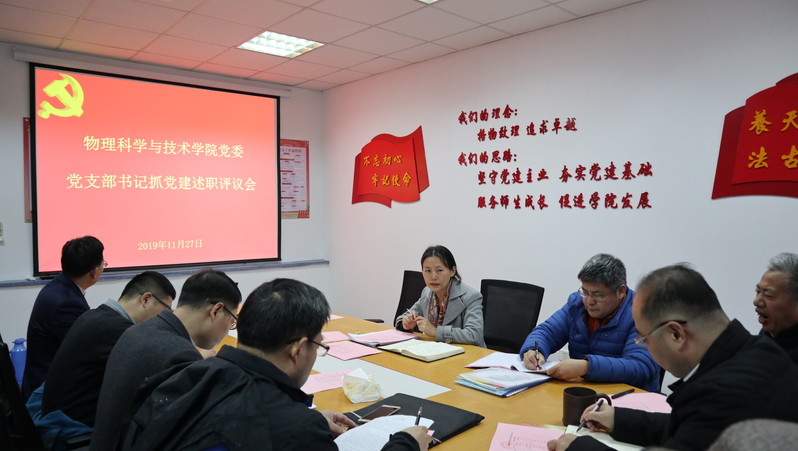 11月27日下午,物理科学与技术学院党委召开了2019年度党支部书记抓党建述职评议会。学院党委委员、各支部书记、专职组织员参加了此次会议。会议由学院党委书记孙德芬主持。