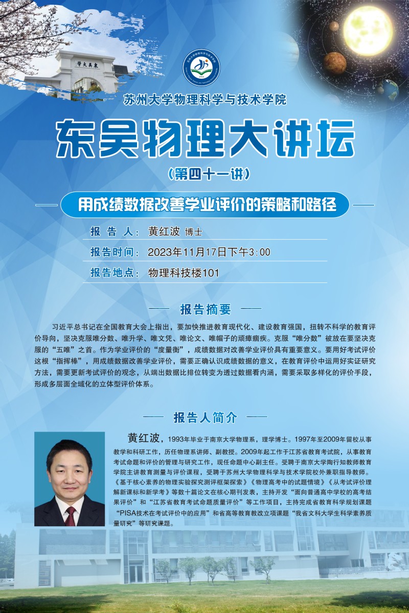 “东吴物理大讲坛“(第四十一讲)——用成绩数据改善学业评价的策略和路径