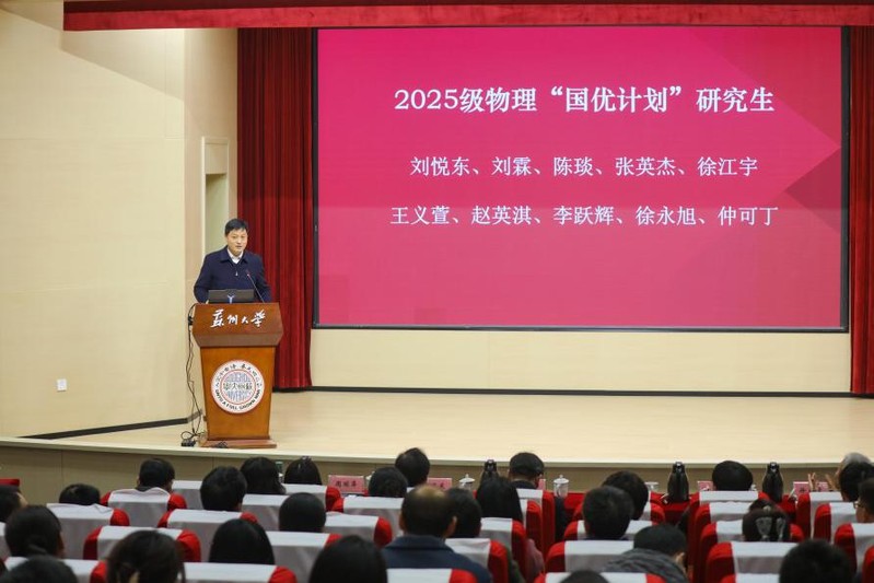 赵承良书记宣读了2025级物理“国优计划”研究生名单,并宣布2025级物理“国优计划”研究生班正式开班。他在讲话中强调,新生们要“以物理学的严谨投身科研,以教育者的情怀担当使命”,切实肩负起培养未来科技人才的重任,并寄语物理学导师、学科教学(物理)导师与实践导师“三导师”加强协同,合力赋能学生学科基础、教学素养与实践能力培养。