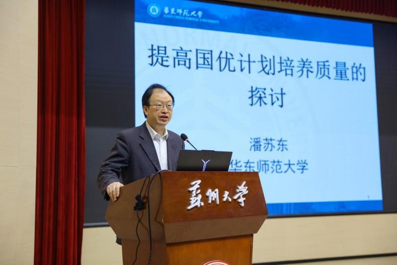 在培养经验分享环节中,华东师范大学潘苏东教授作题为《提高国优计划培养质量的探讨》的主题报告,详尽介绍了以师范见长的综合性大学在“国优计划”招生与培养中的实践经验,同时从通过激励政策提升教师参与度、制定相关的奖惩制度、保障学生的从教率等多个方面提出务实的意见建议。