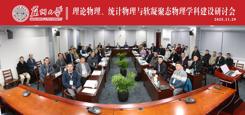 11月28日至30日,“理论物理、统计物理与软凝聚态物理学科建设研讨会” 在苏州大学天赐庄校区成功举办。中国科学院物理研究所王玉鹏院士,浙江大学郑波教授、方海平教授,南京大学王炜教授,上海科技大学张广铭教授等专家学者应邀参会,校党委常委、副校长张正彪,学院院长李亮、党委书记赵承良及学院各研究所负责人、骨干教师代表参加了会议。