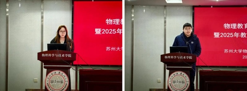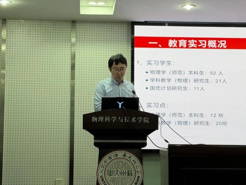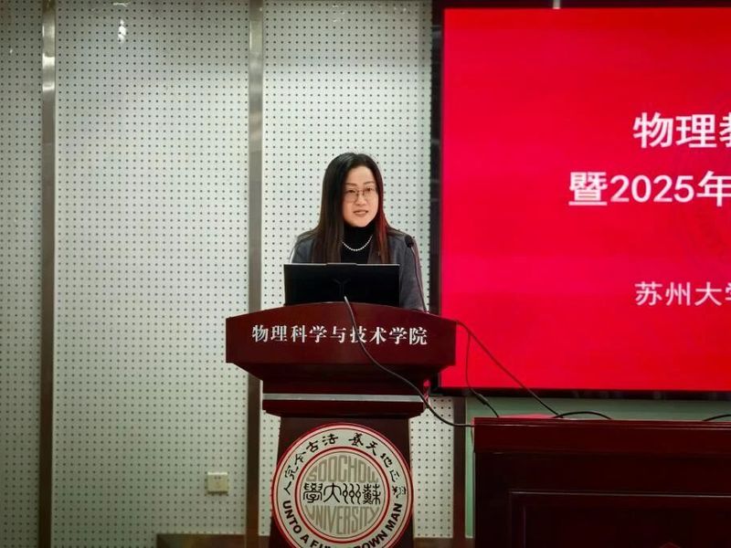 12月3日,苏州大学物理科学与技术学院“物理教育学术研讨会暨2025年教育实习总结大会”在天赐庄校区物理科技楼409举行,2022级物理学(师范)本科生、2024级及2025级教育硕士、国优计划研究生,以及教育实习指导教师、教育硕士指导教师共同参与本次会议。本次大会由学院副院长周丽萍主持。