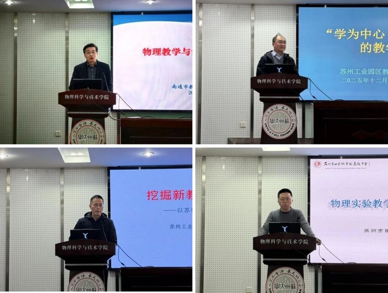 苏州工业园区教师发展中心曹宏以“学为中心 素养导向”为主题,阐释了从“教为中心”到“学为中心”的教学理念转变,提出“聚焦素养不唯分数”的质量观,分享了“学教评云端一体化”模式,同时指出新课改核心是从“教书”向“育人”转变;苏州工业园区星澄学校顾永健围绕“新教材育人价值”,解读了育人导向下教材的新使命,以苏科版教材为例介绍其思政融合的栏目设计,及挖掘史料让素材“活”起来的路径;苏州市田家炳高级中学徐鹏则以“物理实验教学的创新设计与实践探索”为主题,先剖析传统实验教学需从“验证式”转向“深度探究”的困境,进而提出“重构实验课堂”“开发低成本高创意实验”两大创新方向。