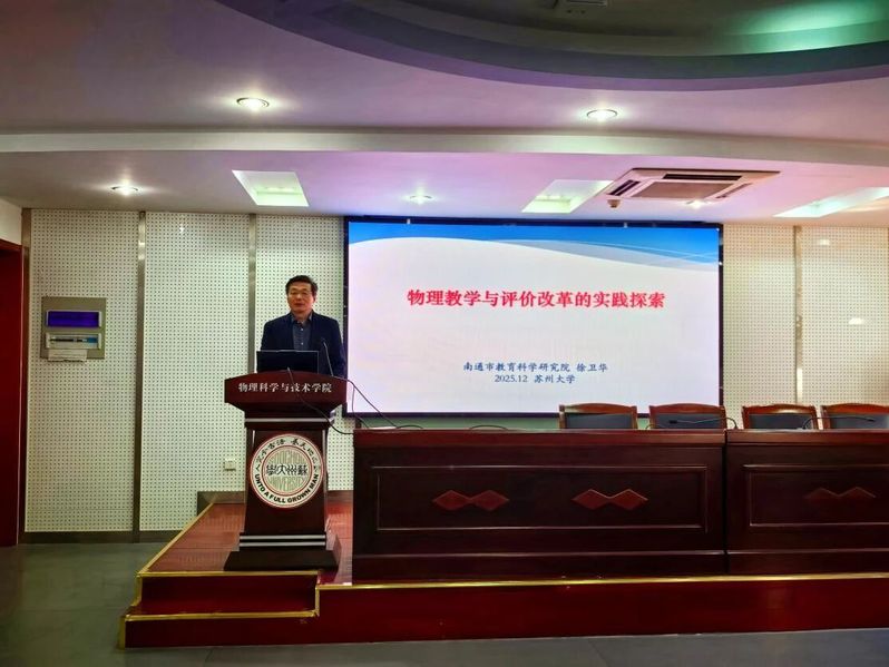 专家报告环节,南通市教育科学研究院院长徐卫华做了《中学物理教学与评价改革的区域实践》报告,强调依课标研教材的核心作用,解读了命题“三不变”“三增强”原则,并明确“加深学科理解、加强评价研究、注重教学创新”三大实践方向。