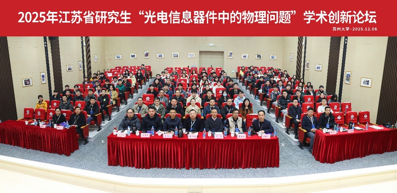 12月5日至7日,由江苏省理学I类研究生教育指导委员会主办,苏州大学物理科学与技术学院承办,苏州市智能光电感知重点实验室协办的“2025年江苏省研究生‘光电信息器件中的物理问题’学术创新论坛”,在苏州大学天赐庄校区顺利举办。