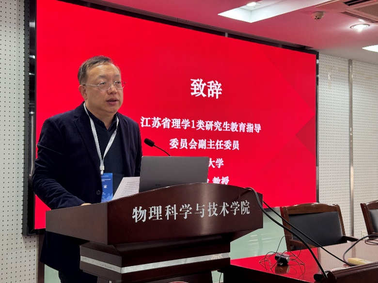 江苏省理学I类研究生教育指导委员会副主任委员、南京大学吴兴龙教授代表教指委致辞。他强调,本次论坛是江苏省研究生创新工程系列活动的重要一环,期待与会专家学者和研究生们能以学术交流为纽带,进一步拓宽学术边界、激发创新灵感。
