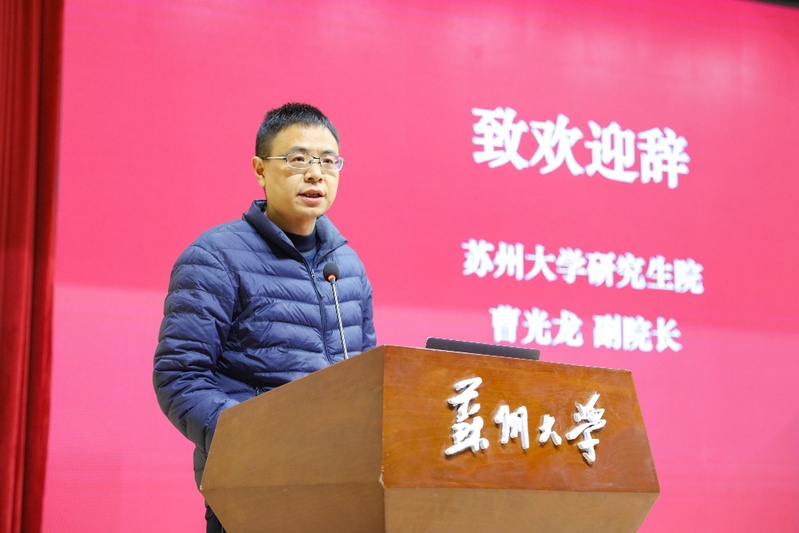 苏州大学研究生院副院长曹光龙代表学校致欢迎辞。他向远道而来的学界同仁与青年学子表达诚挚问候,并简要介绍了苏州大学在学科建设、研究生培养工作中的成效与经验,充分展现了学校在高层次人才培育方面的深厚积淀。