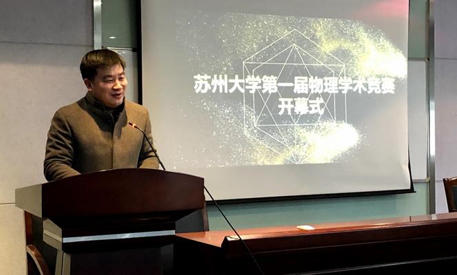 本着为激发学生探究自然奥秘的兴趣,加强学生综合运用物理基础知识解决实际问题的能力,提升低年级本科生创新意识、创新思维、创新能力、团队精神和实践能力的办赛精神。2018年12月21日-22日,由苏州大学教务处和苏州大学物理科学与技术学院主办的第一届苏州大学大学生物理学术竞赛(SCUPT)在天赐庄校区顺利举行。物理科学与技术学院方亮副院长参加了开幕式并致辞,第九届中国大学生物理学术竞赛(CUPT)苏州大学代表队队长冀磊代表裁判宣誓,第九届CUPT苏州大学代表队队员夏体瑞代表队员领誓。