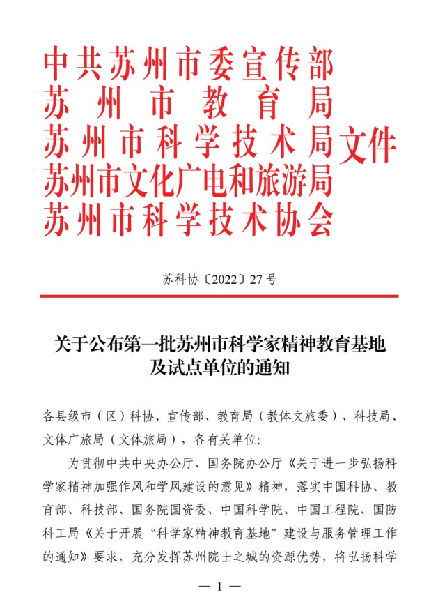 四是共建一批科学奖精神和科普教育基地。在苏州市各中小学共建一批科学家精神宣讲基地,先后与苏州立达中学、吴江程开甲小学、苏州工业园区方洲小学、苏州胥江中心小学、吴江乔芮幼儿园等学校开展基地共建活动。