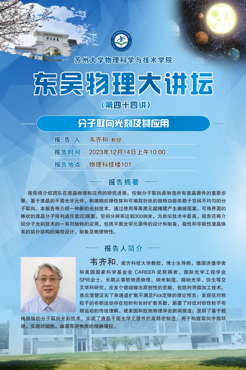 “东吴物理大讲坛“(第四十四讲)——分子取向光刻及其应用