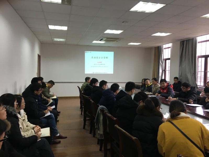 培训讲座前,孙书记和方院长先后就学校、学院面临的实验室安全形势作了简要的阐述,指出了学院实验室现存在的安全问题和实验室全培训的重要性和必要性。